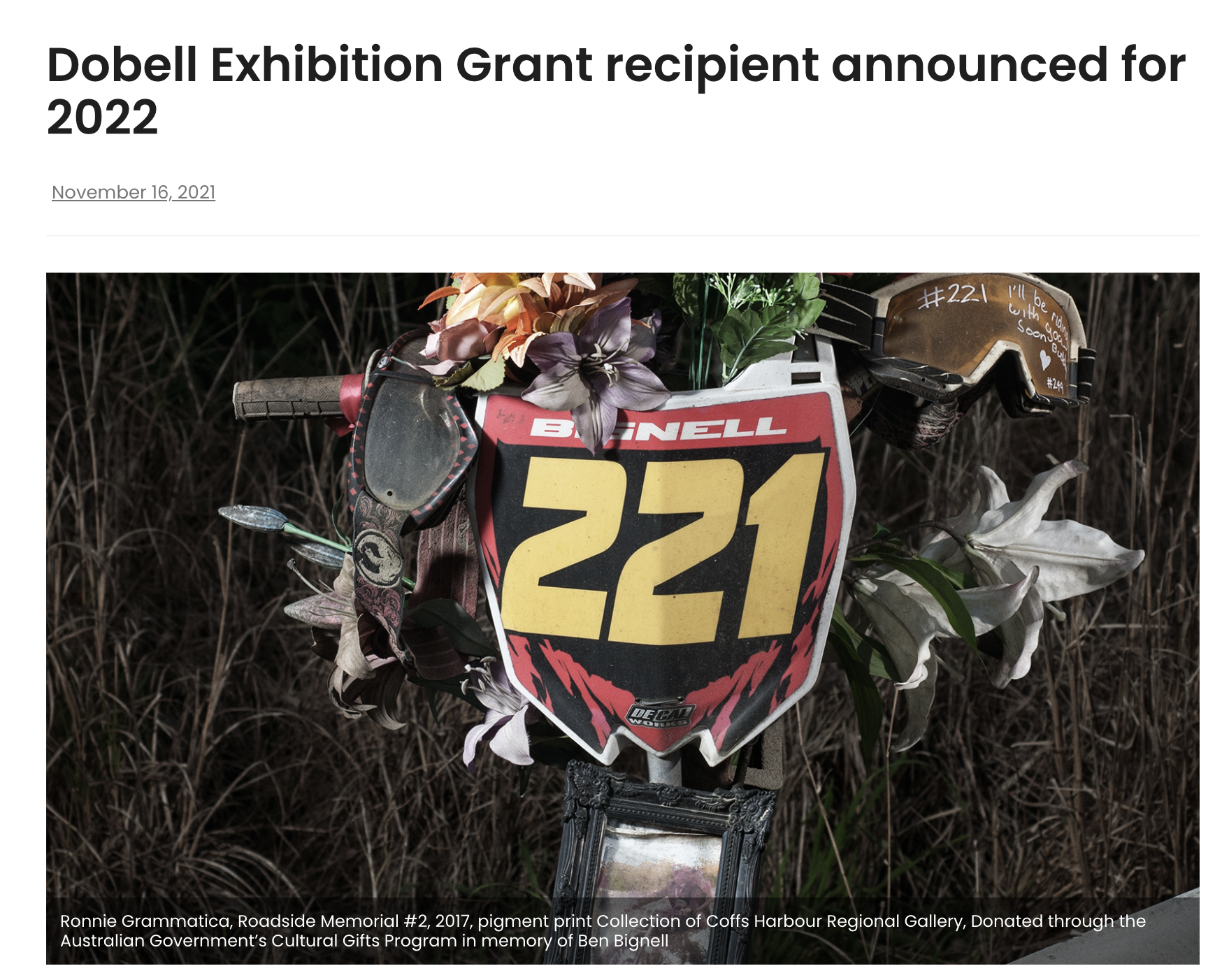 Dobell Exhibition Grant Recipient for 2022